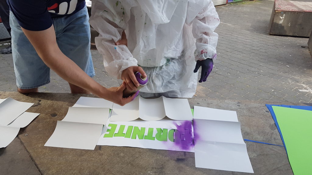 Als Stärkung für den langen Tag gab es leckere selbstgemachte Pizza. Das Highlight des Tages war ein Graffiti Workshop mit dem StreetArt-Künstler Bo, bei dem coole Motive auf Tonkarton gemalt wurden, um ein Andenken mit nach Hause zu nehmen. Für die „Jungs in action“ war dies ein rundum gelungener Tag. Danke an das Team vom Heideplatz!