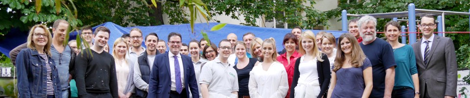 Was bei einem Social Day möglich werden kann, das zeigte die CBRE GmbH letzten Freitag im Internationalen Kinderhaus. Dank der tollen Aktion ist das Haus im Bahnhofs- und Gutleutviertel noch einmal ein Stück schöner für Kinder. Bestens organisiert – von der Verpflegung bis zum Betonmischer wurde alles mitgebracht – gingen rund 30 Mitarbeiterinnen und Mitarbeiter des Unternehmens ans Werk, gaben Räumen und Fluren des Hauses einen neuen Anstrich, gestalteten tolle Wandmotive und hatten vor allem viel Spaß bei der gemeinsamen Arbeit für eine gute Sache.